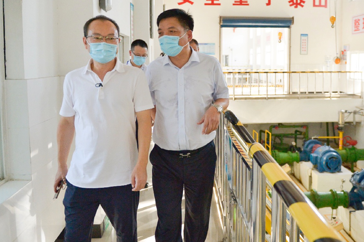 趙書記實地來到柯橋泵站,仔細檢查了電機、水泵、液壓系統(tǒng)、電器控制系統(tǒng)等供水設備設施運行情況,并仔細詢問了節(jié)日期間水源供應、安全生產(chǎn)、水質指標等供水保障情況。在泵站現(xiàn)場,他還向堅守一線的工作人員表示感謝,鼓勵大家要再接再厲,進一步提高站位、強化責任,加強設備巡查,做好應急準備,全力確保供水安全正常。