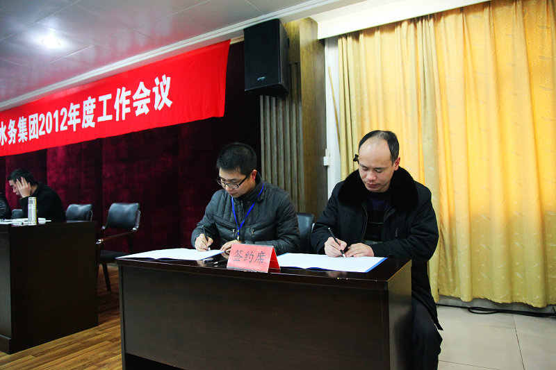 圖為集團與江濱水處理公司簽訂2012年度安全生產責任狀