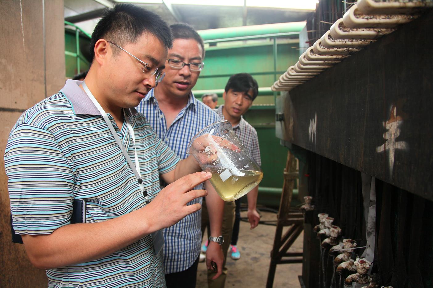 圖為集團技術骨干為企業現場解答污水處理方面難題