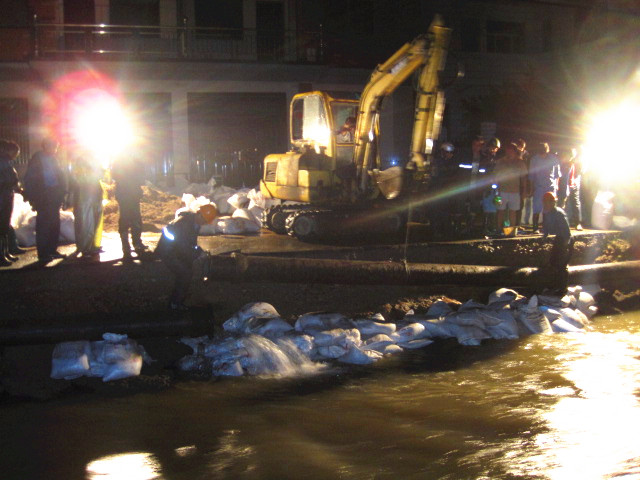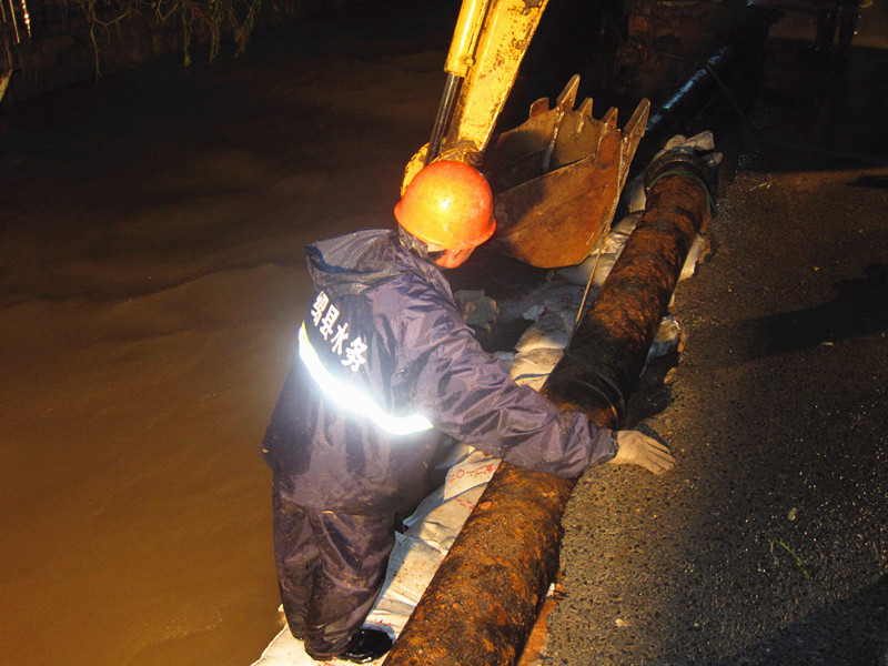 災(zāi)情就是命令!集團接到縣防指命令后,立即啟動大口徑管道應(yīng)急搶修預(yù)案。根據(jù)受災(zāi)情況,集團迅速派出由20多名人員組成的專業(yè)搶修隊伍,隨帶各種專業(yè)搶修工具,冒著大雨趕赴受災(zāi)點,并于下午16時進入現(xiàn)場開始搶修。經(jīng)過8個小時的持續(xù)作戰(zhàn),搶修隊克服重重困難,終于搶通供水管道。然而,凌晨3點多,敖紅了雙眼的搶修人員卻再次接到任務(wù),立即趕赴王壇鎮(zhèn)幫助王壇鎮(zhèn)水廠解決因停電造成管網(wǎng)無法輸水的問題,于凌晨5點恢復(fù)供水。