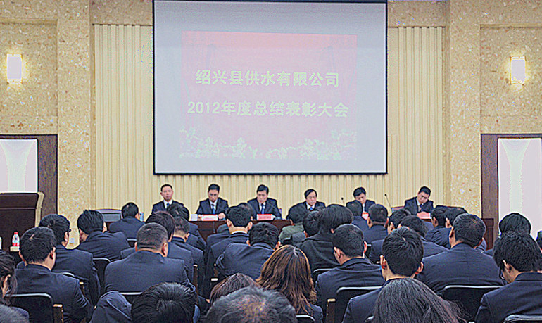 谷董事長(zhǎng)在報(bào)告中指出,剛剛過去的2012年,公司緊緊圍繞“安全求實(shí)、管理求精、服務(wù)求新、行業(yè)求先”的總體思路,通過廣大干部職工共同努力,圓滿完成集團(tuán)下達(dá)的各項(xiàng)經(jīng)濟(jì)指標(biāo)和工作任務(wù),呈現(xiàn)出七大亮點(diǎn):一是全力為政府排解困難,王壇飲用水條件得到根本性改善;二是有效理順高層二次供水管理體制,接收接管工作取得重大突破;三是如期投運(yùn)區(qū)域分質(zhì)供水工程,小舜江供需矛盾有效緩解;四是成功創(chuàng)建城區(qū)現(xiàn)代化分公司,分公司管理有了新標(biāo)桿;五是強(qiáng)勢(shì)推進(jìn)GIS運(yùn)行管理,建設(shè)工作走在集團(tuán)系統(tǒng)前列;六是全面貫徹106項(xiàng)水質(zhì)新國標(biāo),水質(zhì)監(jiān)測(cè)能力又有新提高;七是管網(wǎng)運(yùn)行管理日益精細(xì),供水產(chǎn)銷差率保持行業(yè)領(lǐng)先。2012年,公司還取得多項(xiàng)榮譽(yù):成功創(chuàng)建成為全省供水行業(yè)第一家通過安全生產(chǎn)標(biāo)準(zhǔn)化國家二級(jí)標(biāo)準(zhǔn)驗(yàn)收的企業(yè)、順利取得管道工程專業(yè)承包三級(jí)資質(zhì)、紹興市質(zhì)量管理“四星級(jí)”企業(yè)、紹興市示范化數(shù)字檔案室、連續(xù)三年被評(píng)為“市級(jí)治安安全示范單位”; 公司黨總支順利創(chuàng)建成為紹興縣“創(chuàng)先爭(zhēng)優(yōu)”先進(jìn)基層黨組織。