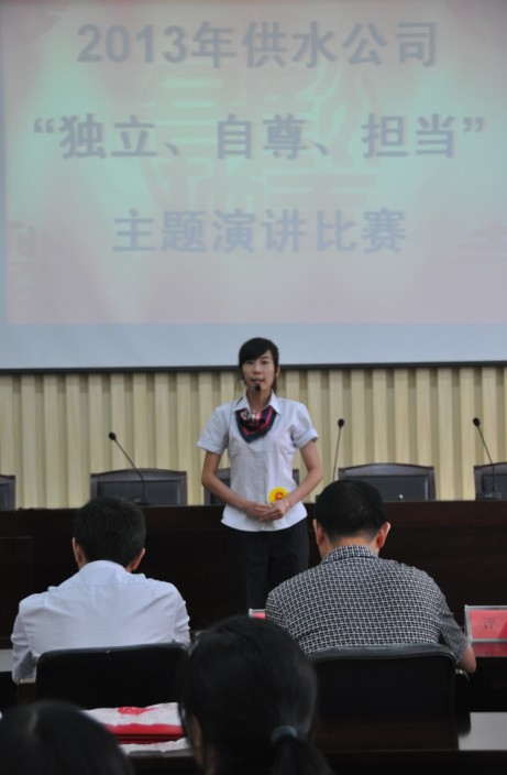 圖為城區(qū)分公司王吉莉參加公司舉辦的 “獨(dú)立、自尊、擔(dān)當(dāng)”主題演講比賽。其中張超男、王吉莉、魏川哲分別獲得公司“獨(dú)立、自尊、擔(dān)當(dāng)”主題演講比賽一、二、三等獎。