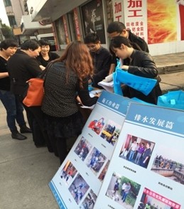 為配合小區(qū)污水管網(wǎng)改造工程項(xiàng)目,3月27日,公司組織人員在錢清永通花園、華清住商樓門口設(shè)攤宣傳,熱情地向居民介紹“五水共治,治污先行”方針政策,倡導(dǎo)居民對亂排放、違規(guī)排放的行為進(jìn)行監(jiān)督,讓居民意識到即將動工的雨污分流小區(qū)是一項(xiàng)優(yōu)環(huán)境惠民生的工程。