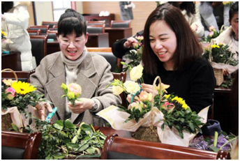 女人遇見花,注定是場美麗的邂逅。3月8日上午,排水公司舉行了“慶三八——提升女性修養(yǎng)”為主題的花藝培訓(xùn)活動。活動邀請專業(yè)花藝?yán)蠋熃o女職工們講解花藝知識,介紹鮮花保鮮小竅門,傳授插花藝術(shù)和技巧,集團(tuán)婦聯(lián)主席童佳萍特邀出席?;顒蝇F(xiàn)場,春意盎然,花香四溢,女職工們躍躍欲試,小試牛刀。康乃馨,向日葵,洋桔梗……在女神們的巧手里煥發(fā)出新的生機(jī)。鮮花和女神更配哦。