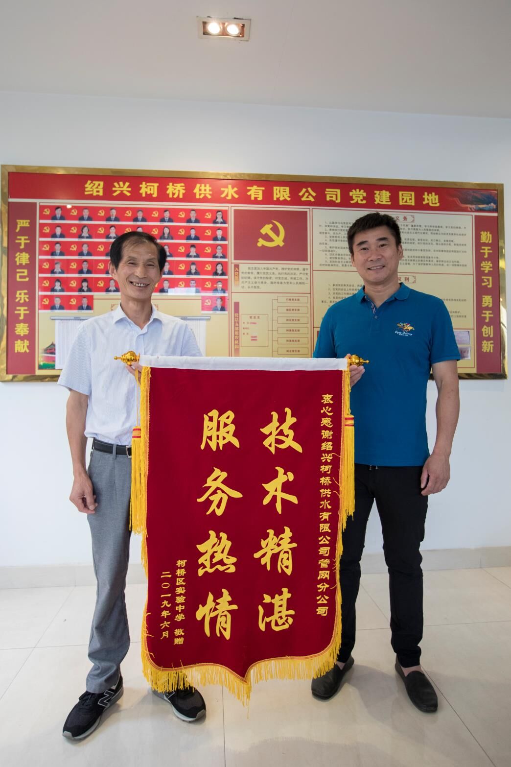 為助力中考,管網(wǎng)分公司立即派出技術(shù)精湛的檢漏班組長(zhǎng)上門服務(wù)。經(jīng)過一系列檢查,于當(dāng)晚查出校內(nèi)供水管道漏點(diǎn)3個(gè),切實(shí)解決了柯橋?qū)嶒?yàn)中學(xué)的用水問題。熱情服務(wù)的態(tài)度和精湛的檢漏技術(shù)得到了實(shí)驗(yàn)中學(xué)的肯定和點(diǎn)贊。為此,6月12日,該校總務(wù)科長(zhǎng)李強(qiáng)代表柯橋?qū)嶒?yàn)中學(xué)向管網(wǎng)分公司送上錦旗,以表感謝。